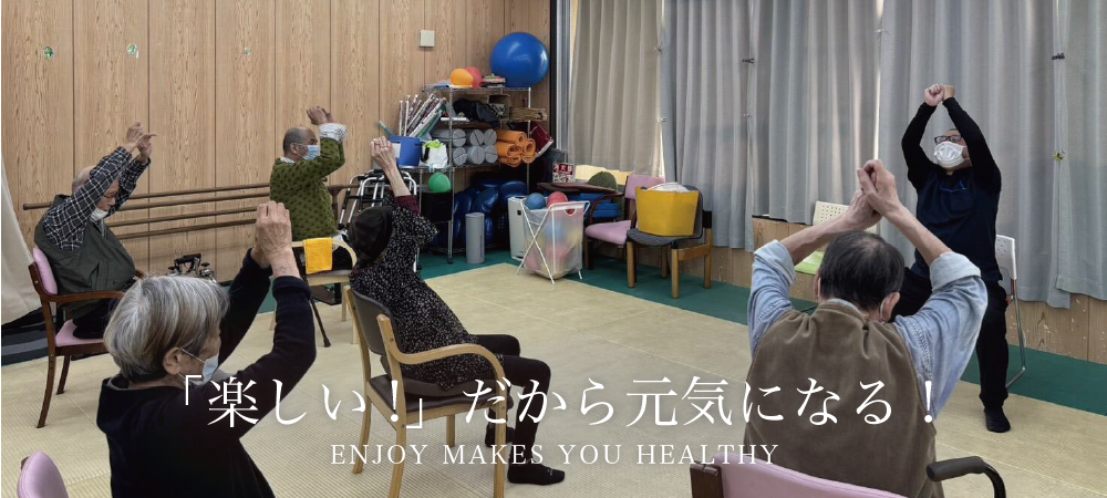 介護と医療その他の事業が連携し、利用者様が求める生活の質と動作の維持・向上を行えるよう、個々の運動内容と生活環境を考えた包括的なサービスを元気と笑顔で実行します。
