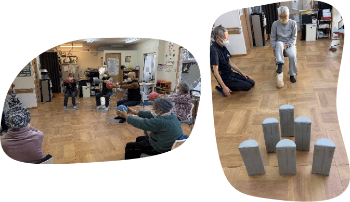 運動といえど、器具やマシンは利用しません。全てひろゴンのオリジナルです。とはいえ自社で特別に製造しているわけではありません。当社のスタッフが、利用者さんの状況を色々考えて、使えそうなものをお店で調達してきたり、時には手作りのものも用意します。また、カリキュラムの最後には、必ず楽しくなるプログラムを用意し、「次も来たい!」と思ってもらえるように工夫しています。ふさぎ込みがちな状態にならないよう、一生懸命心をこめて利用者さんのことを考えています。
