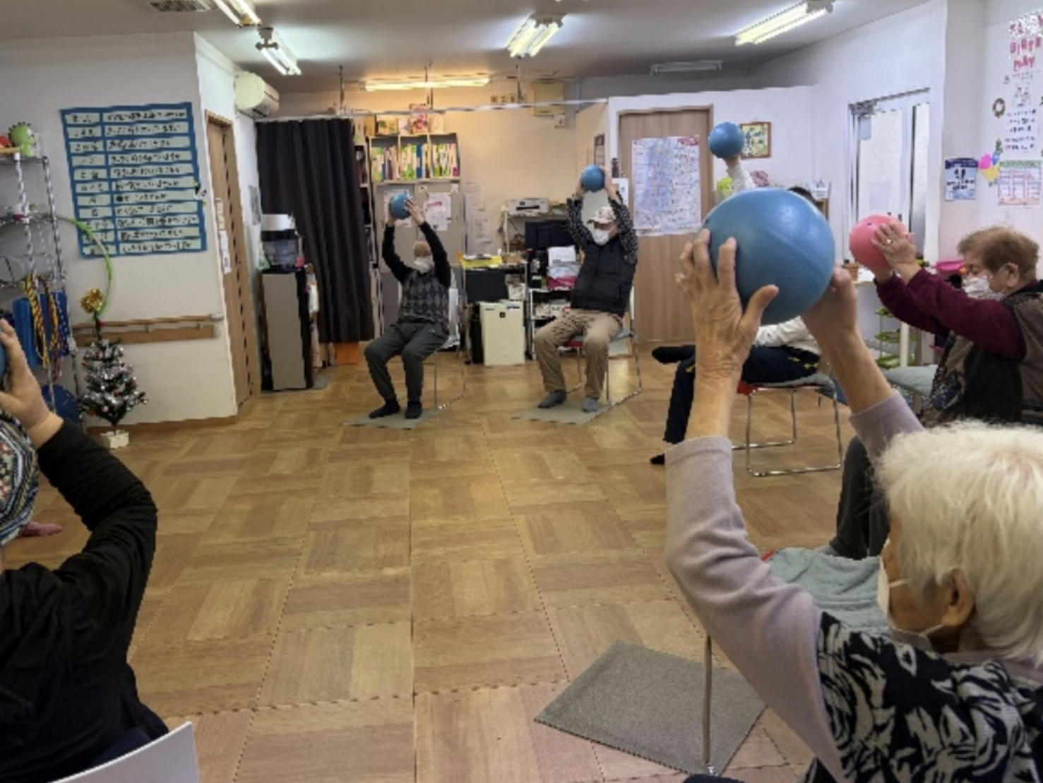 デイサービス ひろゴンでは、利用者さん一人ひとりに目標を持ってもらって、運動に取り組んでもらっています。