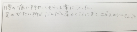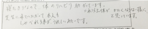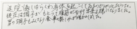 院の訪問鍼灸を受けていただいている方の声です。