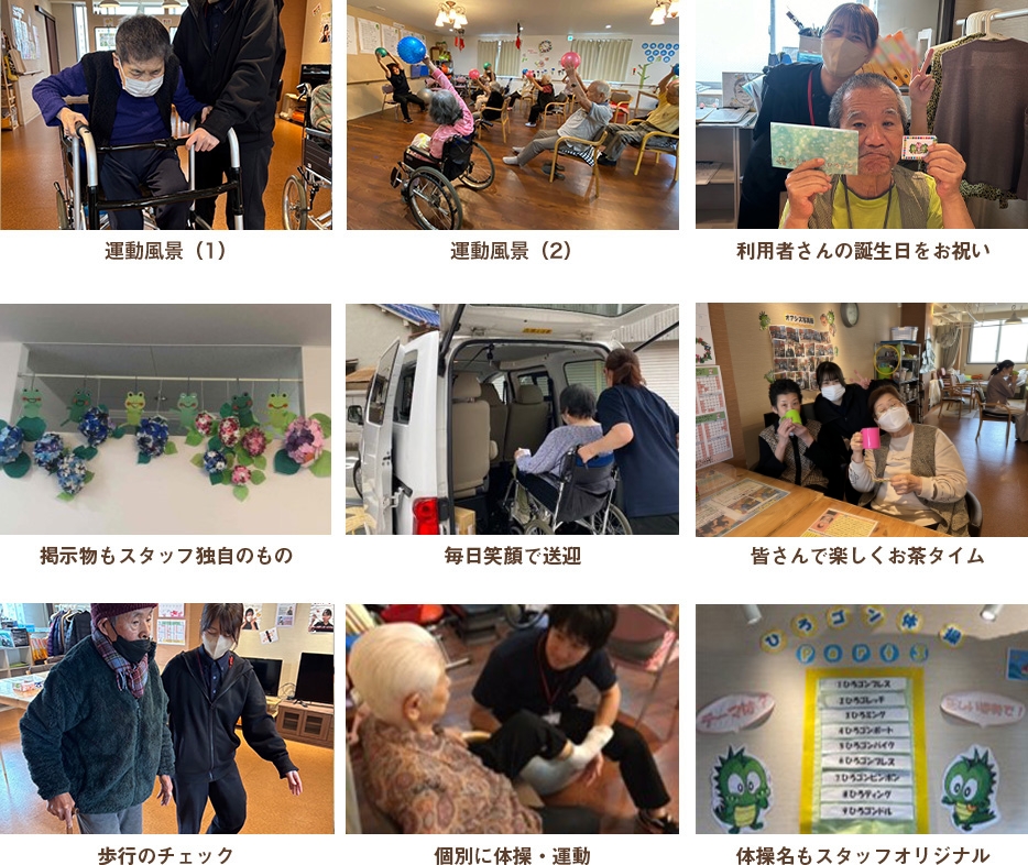 介護と医療その他の事業が連携し、利用者様が求める生活の質の維持・向上を行えるよる、個々の運動内容と生活環境を考えた包括的なサービスを元気と笑顔で実行する。”日本一楽しい”介護事業を目指す。